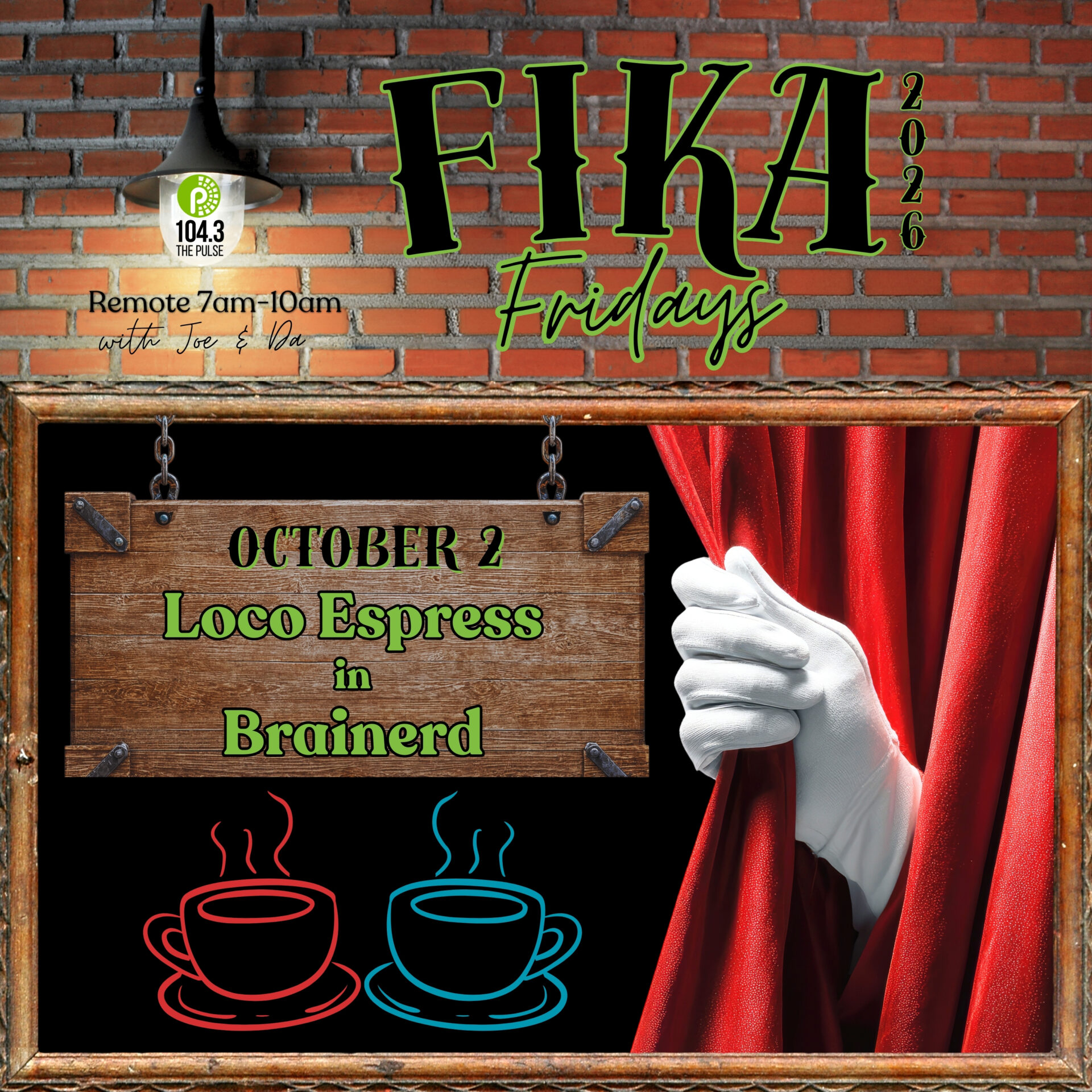 Join our morning show team Joe & Da for our LAST Remote Fika Friday of 2026. October 2nd @ Loco Espress in Brainerd 7am - 10 am Stop by, buy […]