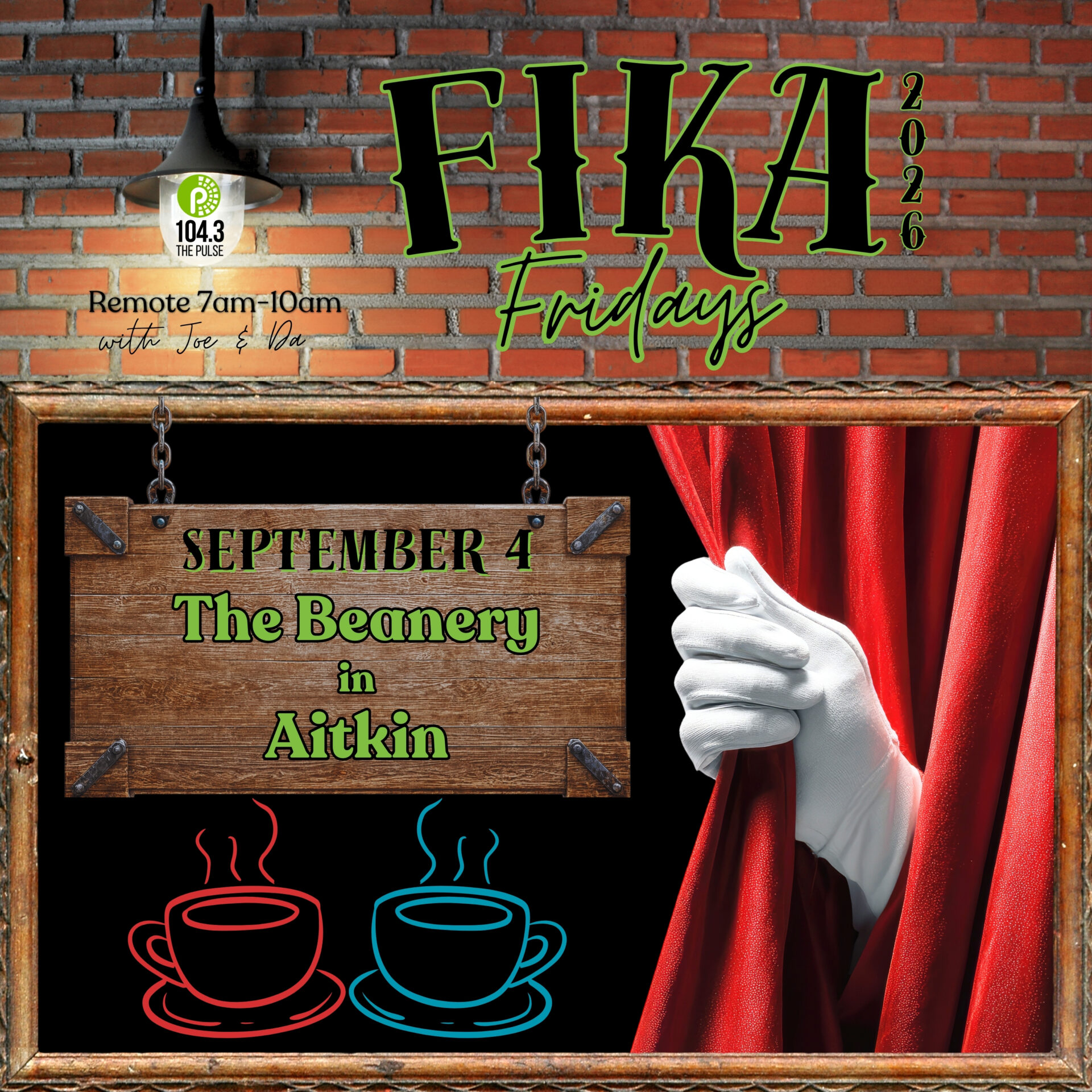 Join our morning show team Joe & Da for our next Remote Fika Friday of 2026. September 4th @ The Beanery Cafe in Aitkin 7am - 10 am Stop by, […]